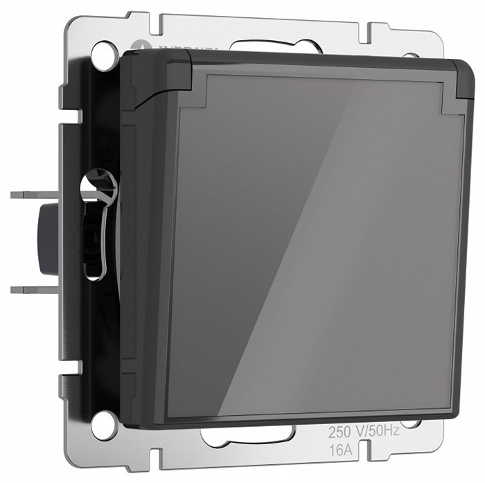Розетка влагозащищенная с заземлением и с шторками, без рамки с крышкой Werkel Графит акрил W1171244